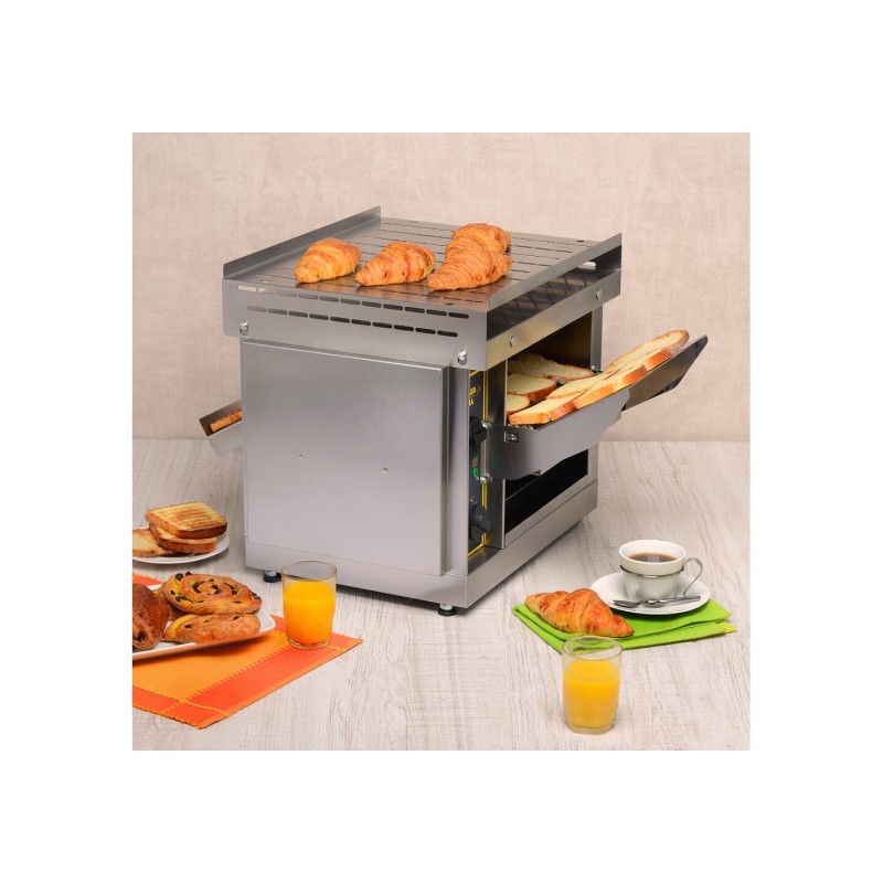 Ρυθμιζόμενη ταχύτητα φρυγανίζει μόνο πάνω μόνο κάτω ή και πάνω κάτω Δυνατότητα εξαγωγής του ψωμιού από το εμπρός και από το πίσω μέρος της συσκευής