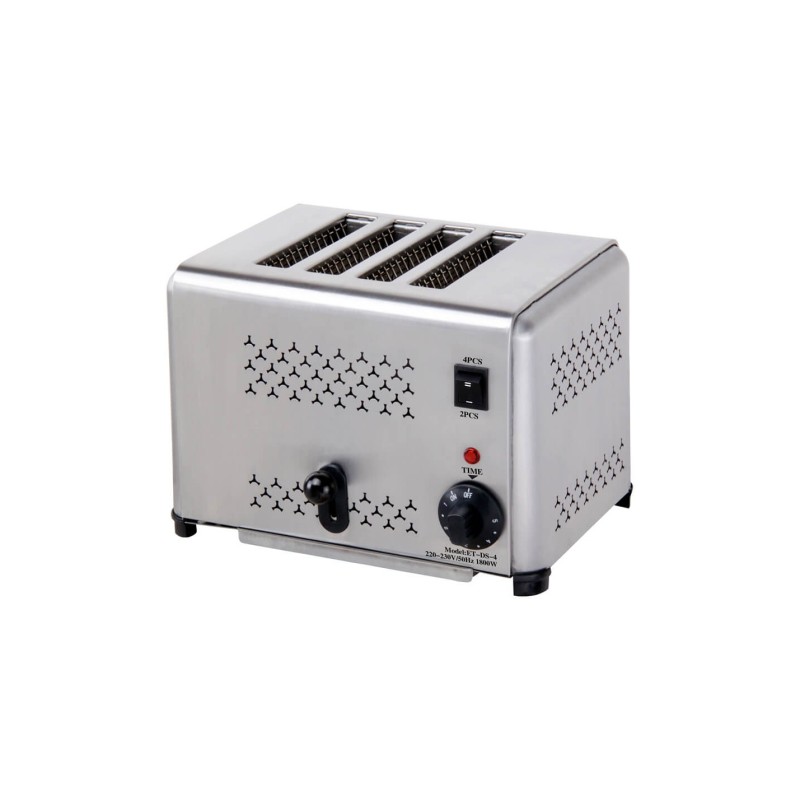 Ανοξείδωτη φρυγανιέρα 4 θέσεων Με διακόπτη επιλογής 2 ή 4 θέσεων χρονοδιακόπτη 0 έως 5 λεπτά και ενδεικτική λυχνία
