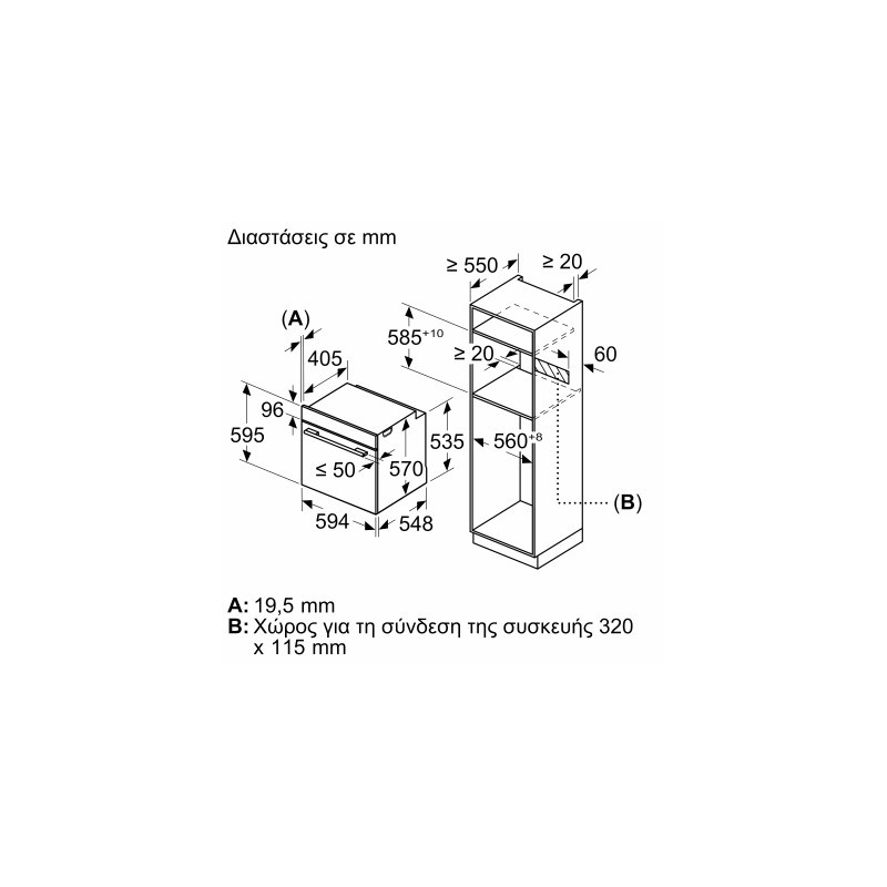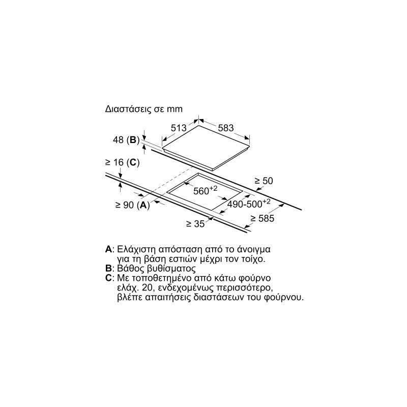 Διαστάσεις εντοιχισμού (υ x π x β) 48 x 560-560 x 490-500 mm