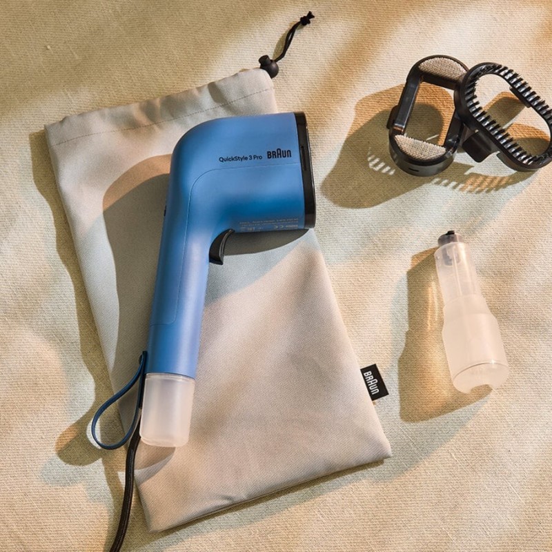 Κομψή και με εξοικονόμηση χώρου, η νέα QuickStyle 3 της Braun διαθέτει εξαιρετικά λεπτό σχεδιασμό, ιδανικό για ταξίδια – και είναι πολύ εύκολη για αποθήκευση στο σπίτι. Απλώς κρεμάστε τη σε ένα γάντζο ή βάλτε τη σε ένα συρτάρι ή σε ένα καροτσάκι μεταφοράς. Η τεχνολογία FastSteam προσφέρει εύκολη αφαίρεση στις ζάρες στην κίνηση με βαθμό παροχής ατμού έως 22 g/λεπτό. Και όταν πρόκειται για ταξίδια, η QuickStyle 3 Pro συνοδεύεται από έξυπνα αξεσουάρ που σας βοηθούν για μια ωραία εμφάνιση, όπως ένα βολικό προϊόν αφαίρεσης χνουδιών και μια βούρτσα. Επιπλέον, περιλαμβάνεται μία ανθεκτική στη θερμότητα τσάντα αποθήκευσης και ένα δοχείο νερού 120 ml.
