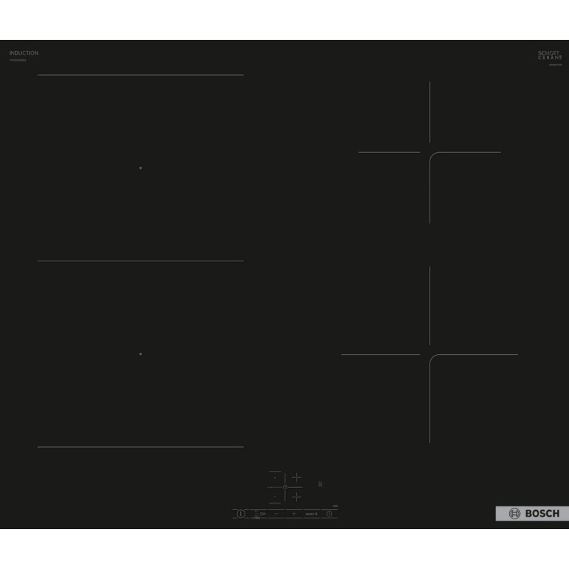 TouchSelect επιλογή της επιθυμητής ζώνης μαγειρέματος και εύκολη ρύθμιση της βαθμίδας ισχύος CombiZone συνδυάστε δύο ζώνες επαγωγικών εστιών σε μία, για να θερμαίνετε μεγάλα σκεύη μαγειρικής Ο ιδιαίτερος σχεδιασμός στο μπροστινό μέρος της εστίας Bosch, προσδίδουν κομψότητα και διαχρονικό στυλ στη συσκευή, αλλά και στην κουζίνα σας